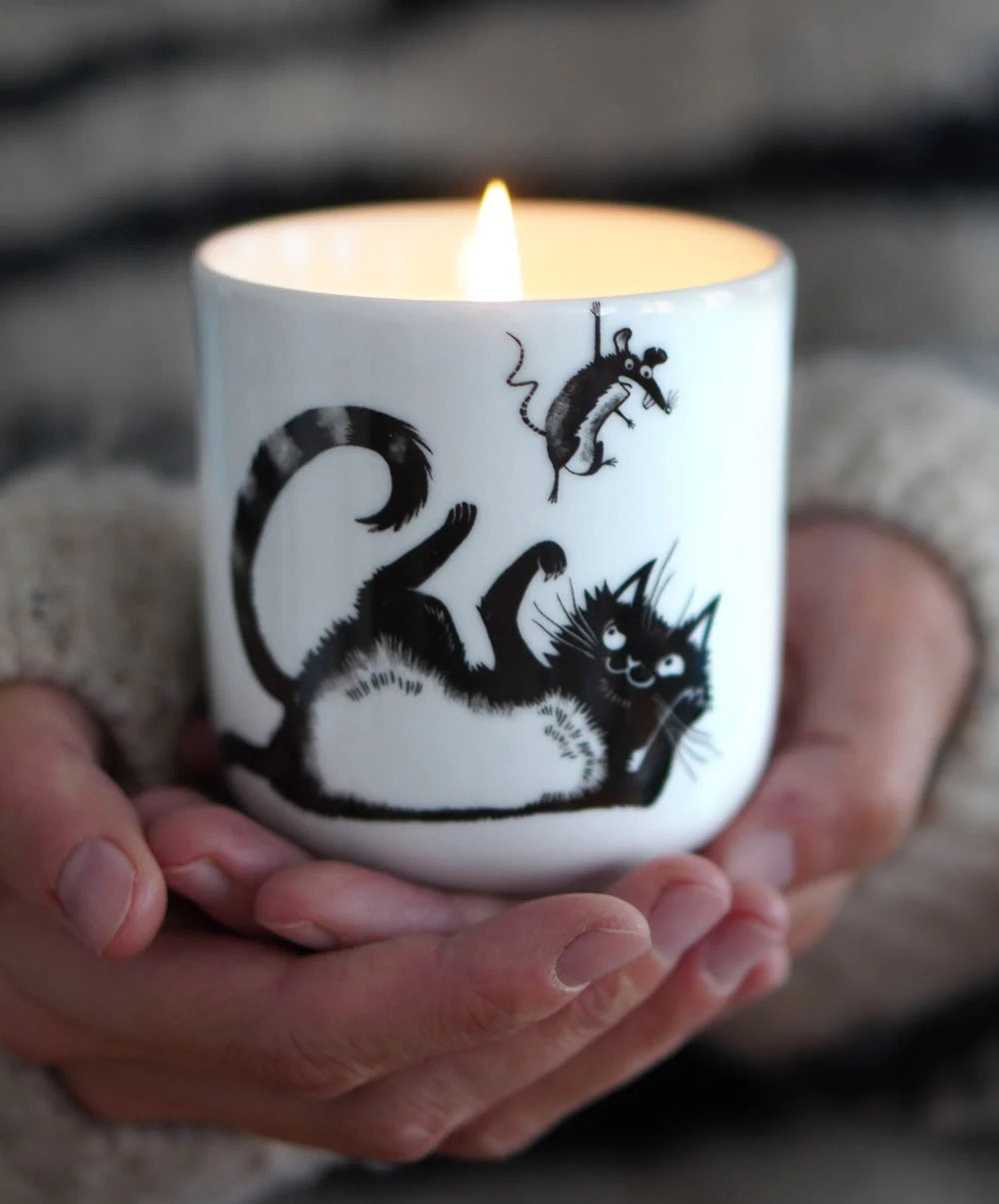 Die Zwei haben sich zum Fressen gern! Dabei wird dieses Spektakel von einem fruchtig frischen Duft begleitet, denn du vielleicht schon von unserer Mau Mau Duftkerze kennst. Und das beste dran, nach dem Abbrennen kann das Gefäß weitergenutzt werden für viele tolle Sachen.