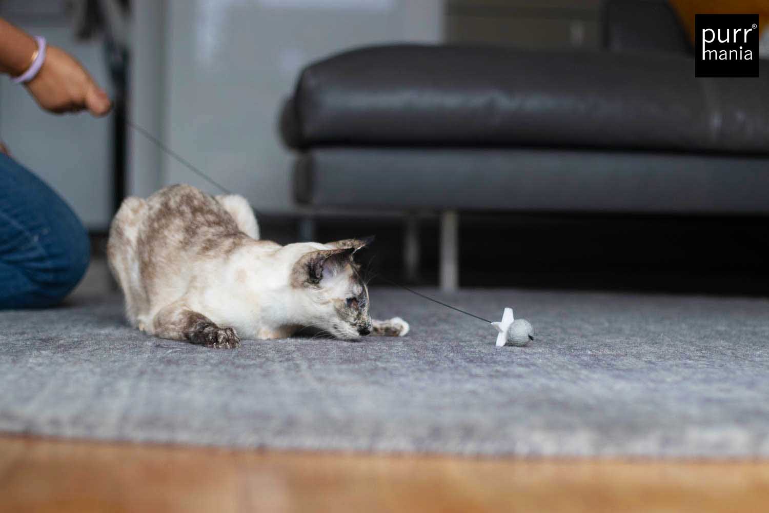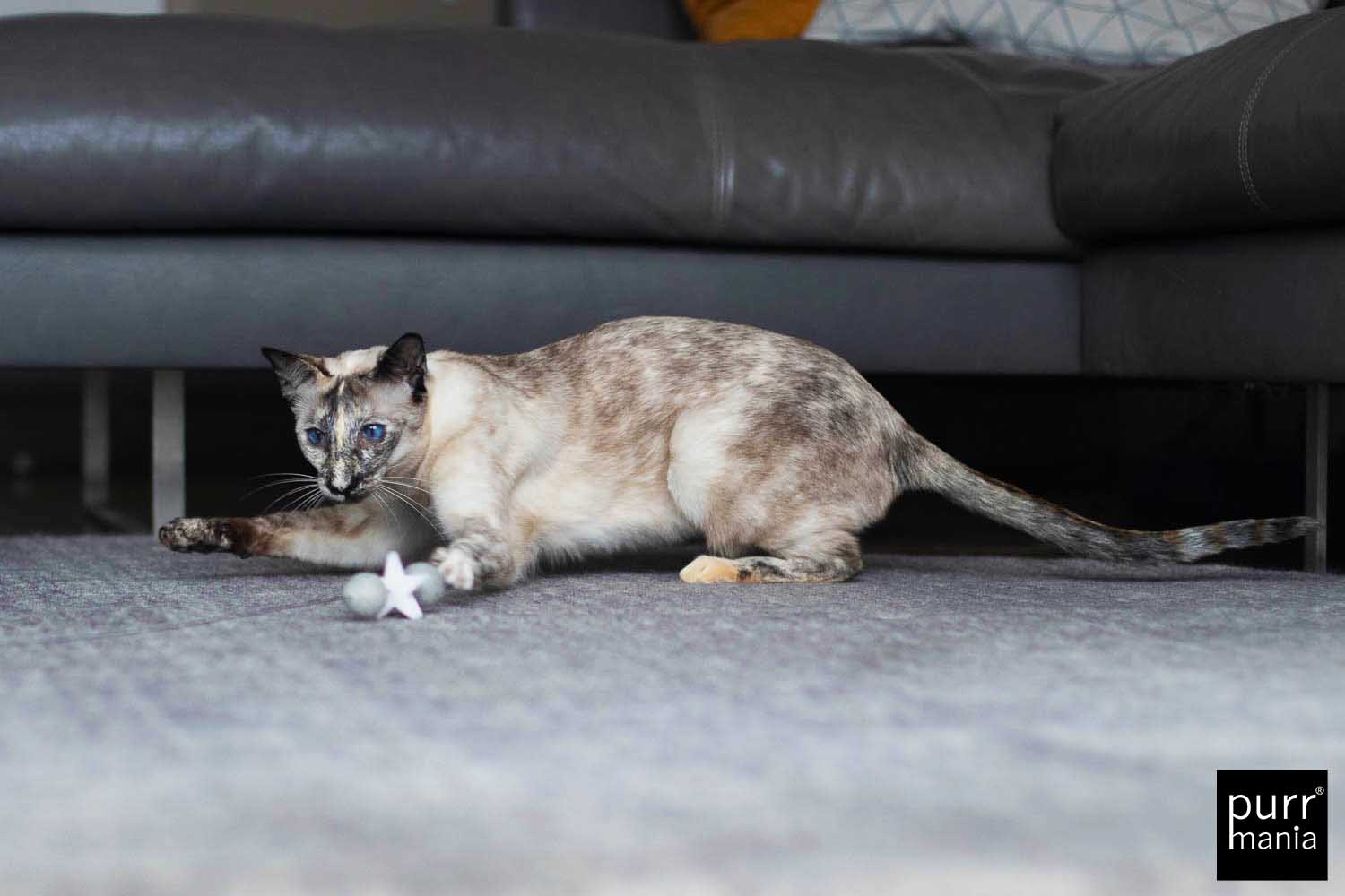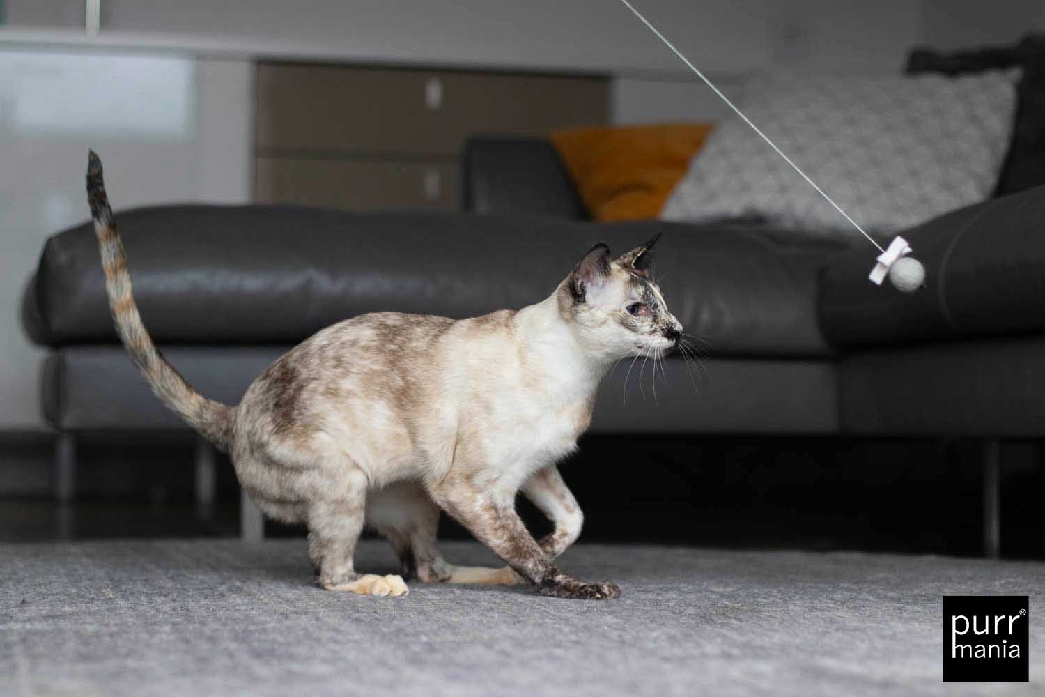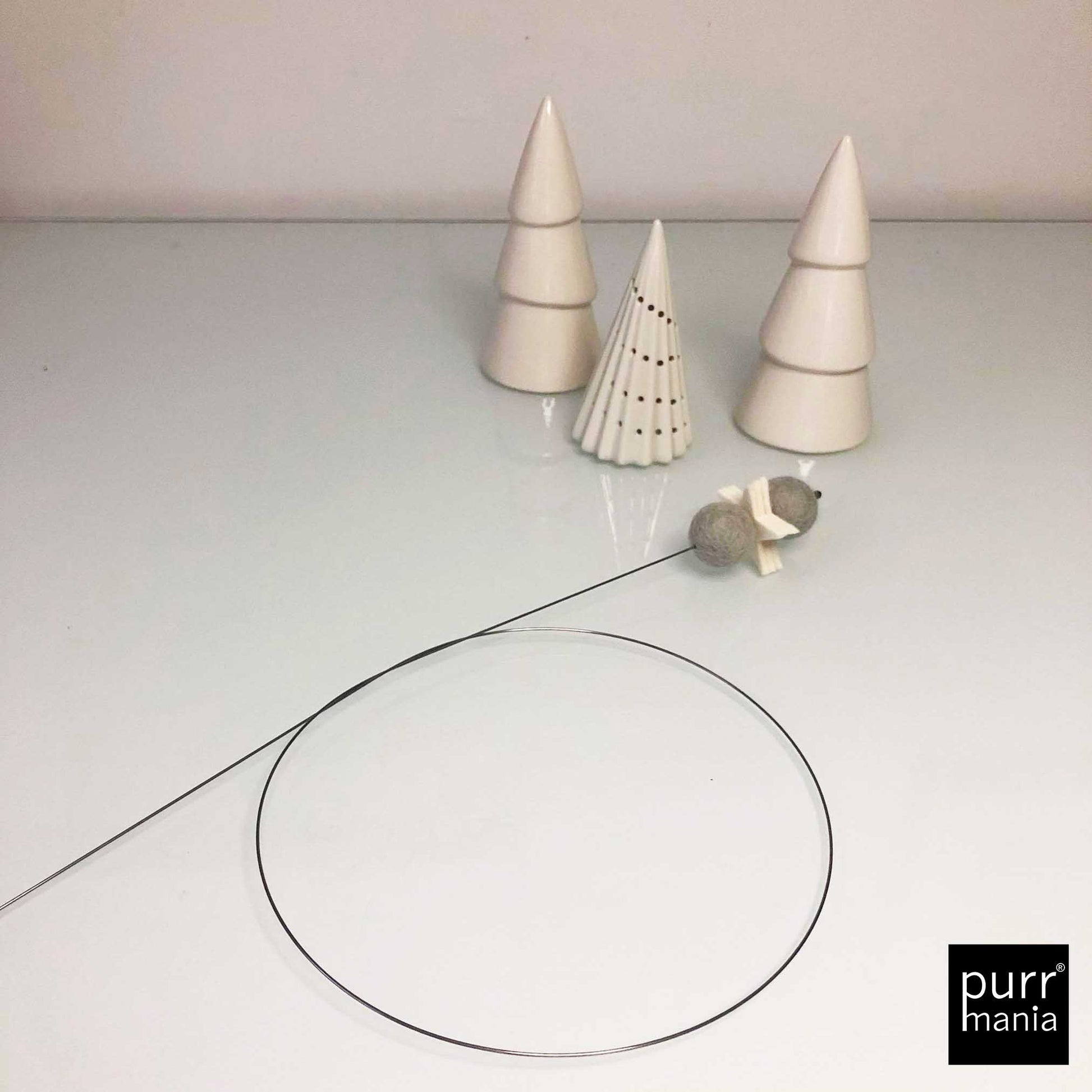 Nicht für Kinder geeignet! Nur zur Nutzung durch Haustiere.Tiere nie unbeaufsichtigt mit dem Spielzeug lassen.Beschädigtes Spielzeug nicht mehr weiter benutzen.Bei versehentlich verschluckten Teilen einen Tierarzt aufsuchen.Alle purrmania-Spielzeuge werden mit großer Sorgfalt und viel Liebe in unserer Berliner Manufaktur von Hand gefertigt. Die hohe Qualität bei Material und Verarbeitung ist unsere Verantwortung, deine ist es, deine Katze nicht unbeaufsichtigt damit spielen zu lassen – gemeinsam Spielen ist ohnehin viel schöner und stärkt die Bindung zwischen Mensch und Tier. Für einige wenige Katzen ist unser Spielzeug so sehr "echte Beute", dass sie alles daran setzen, dieses zu zerlegen. Natürlich sind Katzen rein körperlich dazu in der Lage, eine Beute komplett auseinander zu nehmen wenn sie es wollen. Bitte unterscheide, ob deine Katze ein Spielverhalten zeigt oder im "Zerstörungs- und Beuterausch" ist. Bei letzterem empfehlen wir, das Spielzeug gegen einen Leckerbissen einzutauschen und erst am nächsten Tag wieder zur Verfügung zu stellen. Sollte sich ein Teil des Spielzeugs lösen, schneide es bitte ab. Defekte Spielzeuge bitte ersetzen.